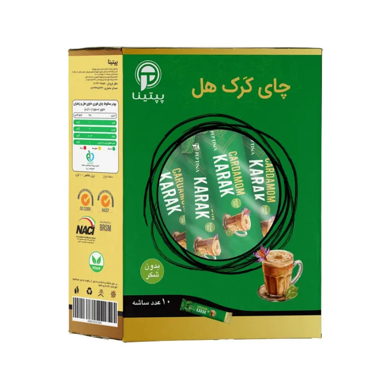 کرک هل ترکیبی از : پودر چای سیاه فوری، پودر خامهای کننده غیرلبنی (برپایه روغن نارگیل)، پودر سرگل زعفران، پودر هل و استویا (عامل شیرین کننده)