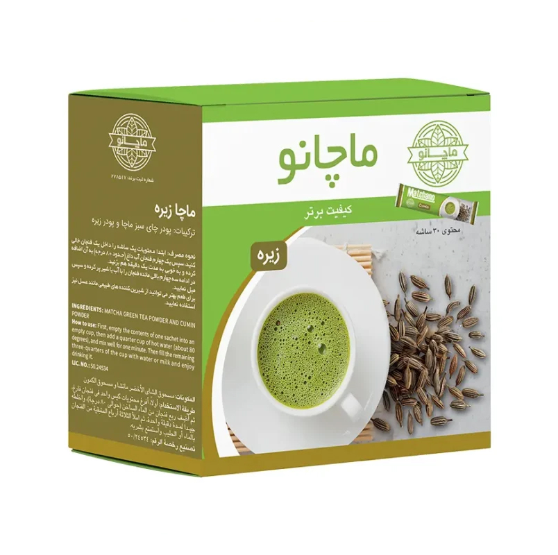 ماچا زیره ترکیبی از : پودر ماچای اصل ژاپنی ، پودر زیره طبیعی