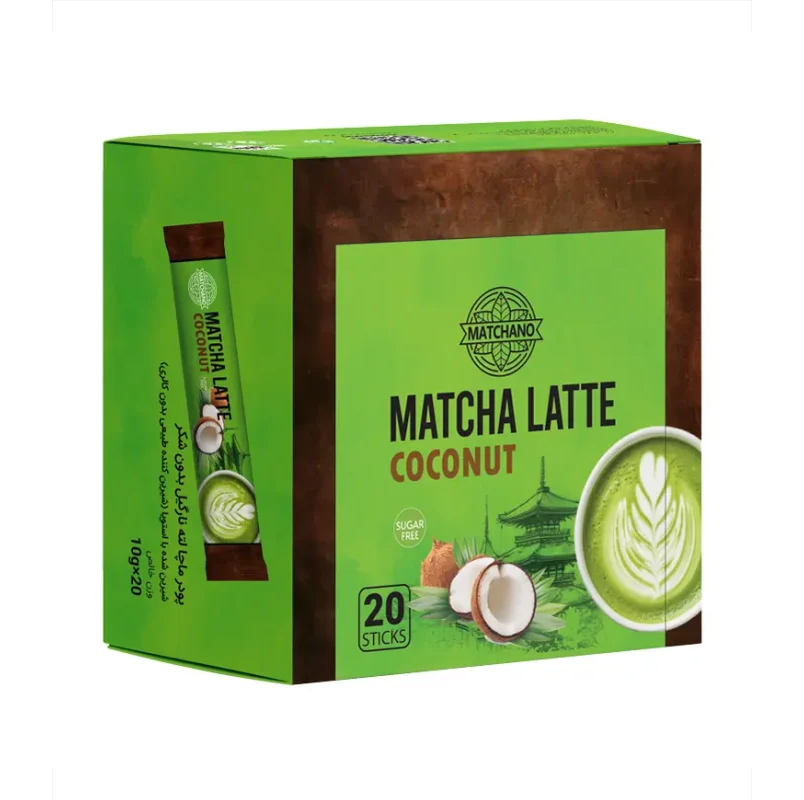 ماچا لته ترکیبی از : پودر ماچا تشریفاتی ، پودر شیر نارگیل ، استویا