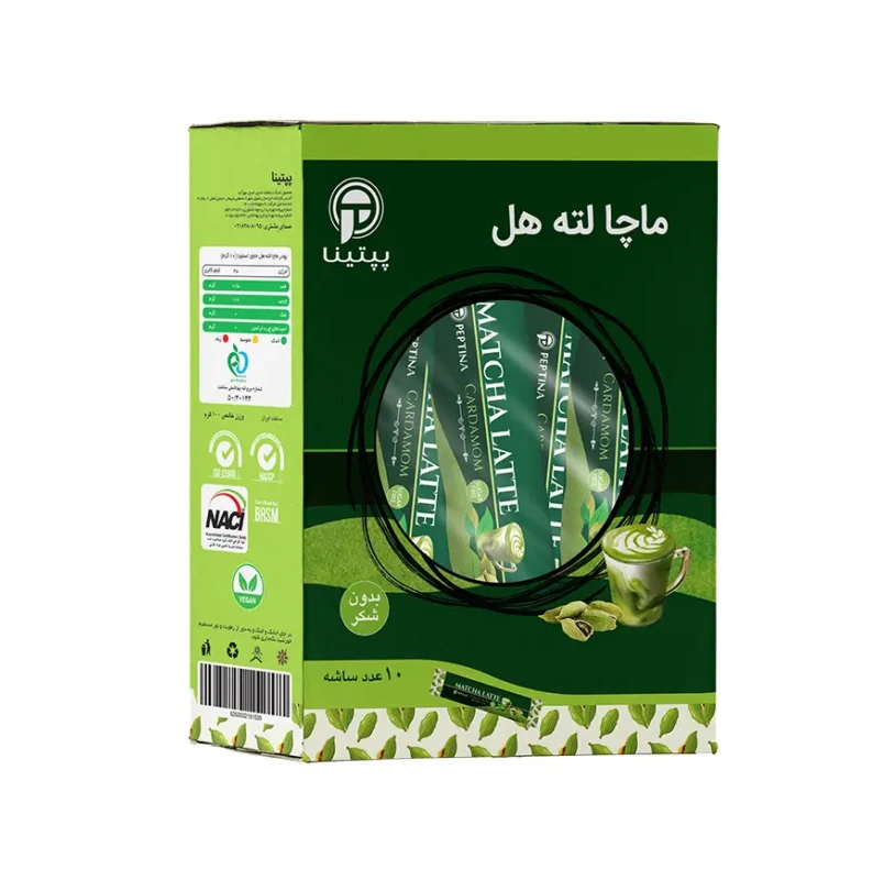 ماچا لته ترکیبی از : پودر ماچا، کریمر غیر لبنی ، پودر هل ، شیر غیر لبنی، استویا